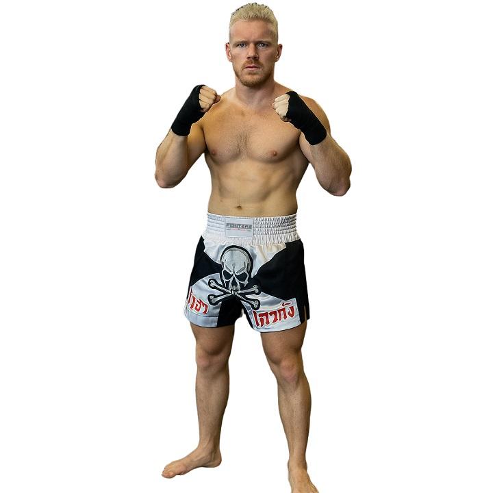 FIGHTERS - Muay Thai Shorts / Skull / Weiss-Schwarz
